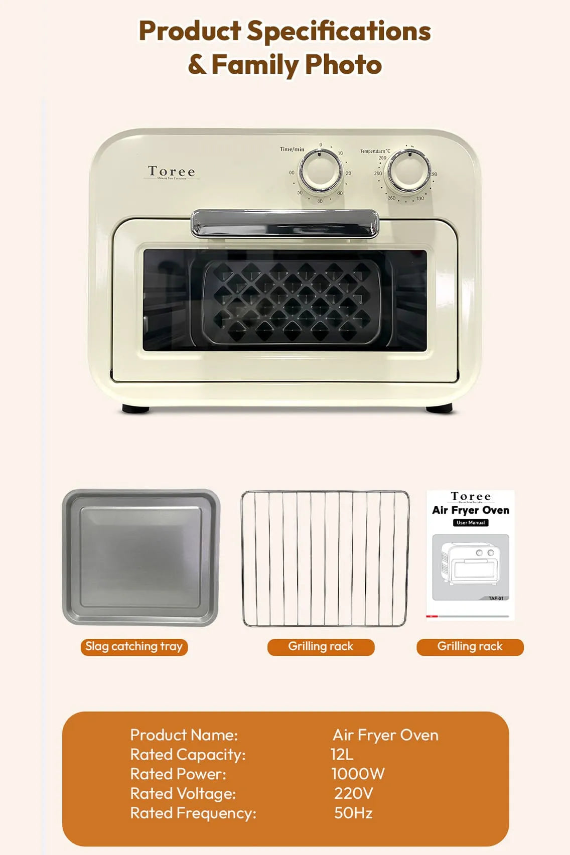 The Toree 12L Air Fryer Oven is a smart and versatile addition to any home kitchen, designed to make everyday cooking healthier, faster, and more convenient. Powered by a 1000W heating system with advanced 360° hot air circulation, it ensures even cooking with minimal oil while delivering crispy and delicious results. Its compact yet spacious 12-liter capacity makes it ideal for baking, grilling, roasting, and air frying a variety of dishes for the whole family.