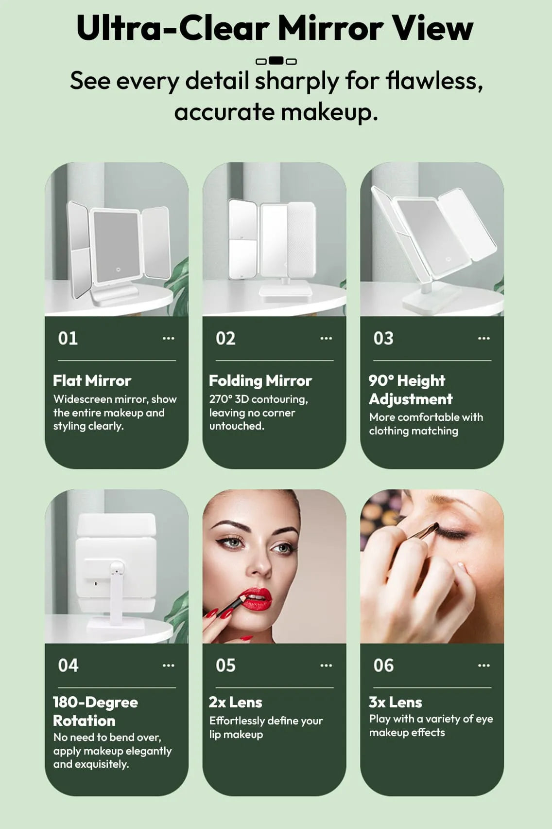 - See every detail clearly for flawless eyes, lips, lashes, and contouring